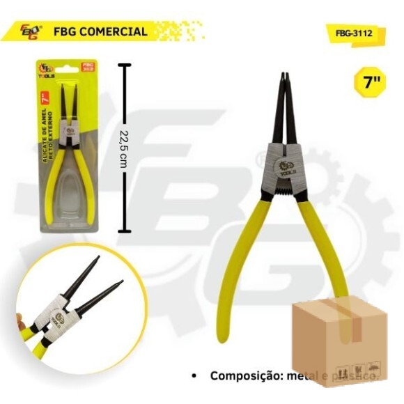 Alicate de anel reto externo FBG foi projetado para oferecer praticidade, qualidade e durabilidade. Fabricado com materiais de alta qualidade