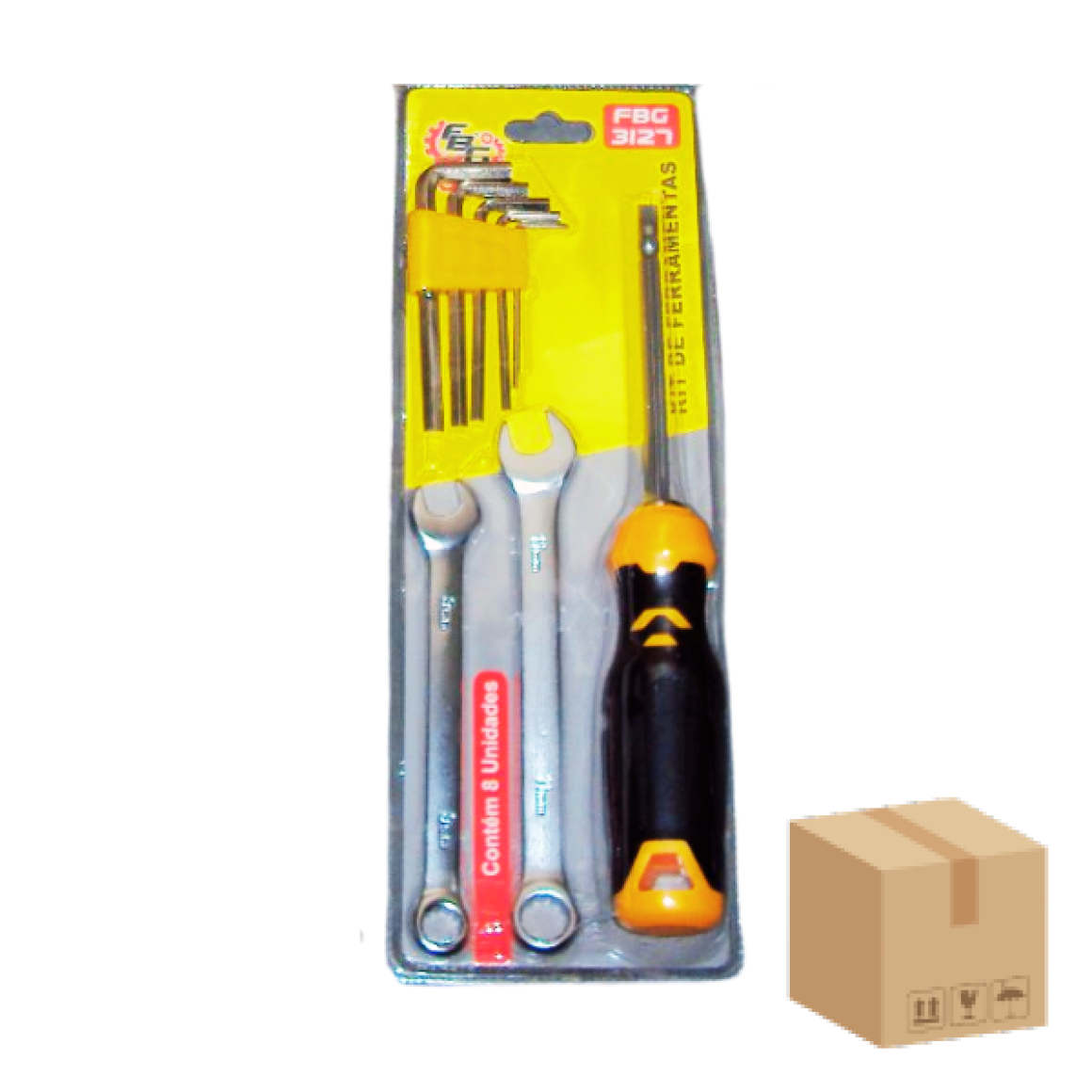 Descrição: Jogo com 8 unidades - 5 Chave Allen / 1 Chave Fenda / 1 Chave de Boca 11MM / 1 Chave de Boca 9MM