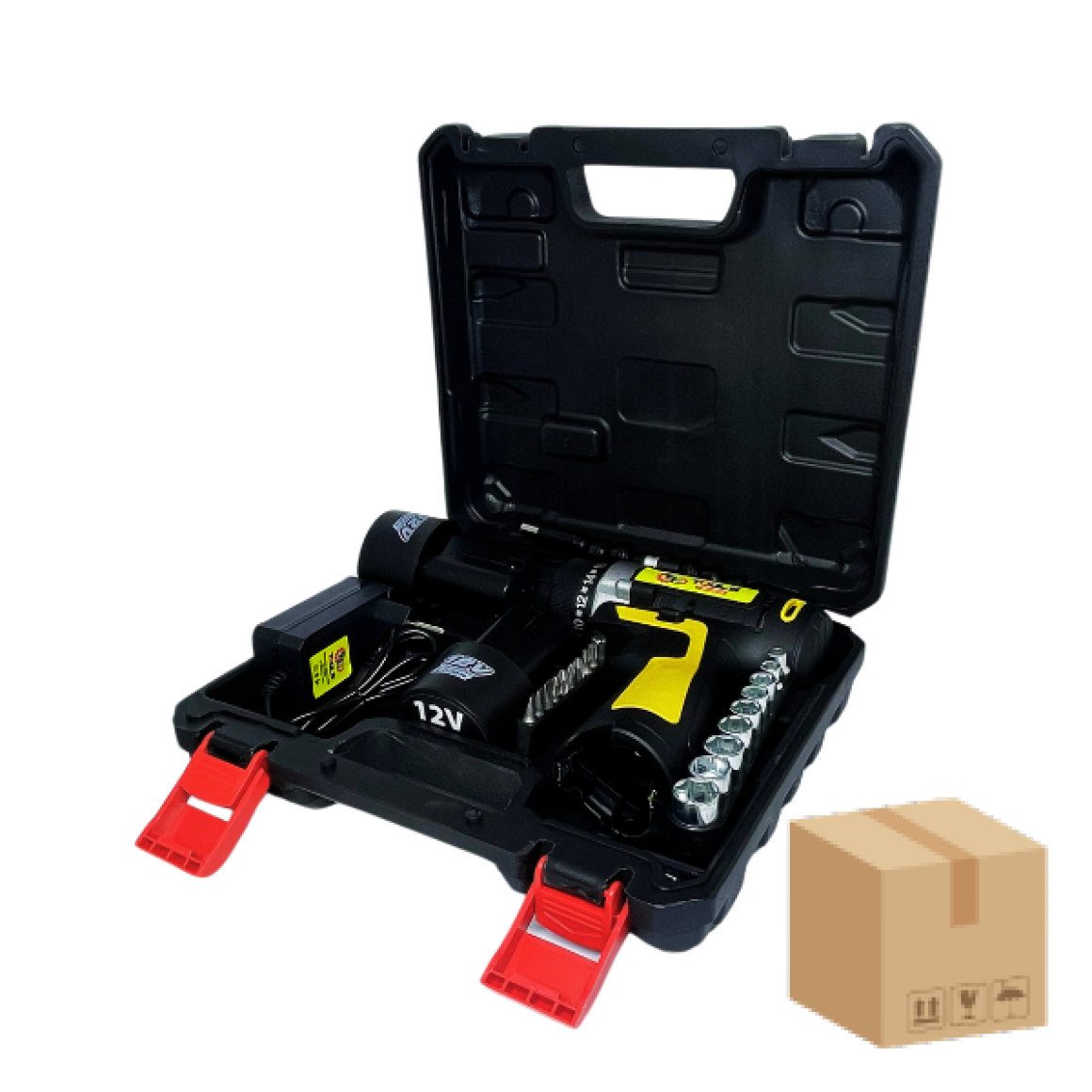 Descrição: Furadeira - Parafusadeira 12V com maleta de ferramenta.