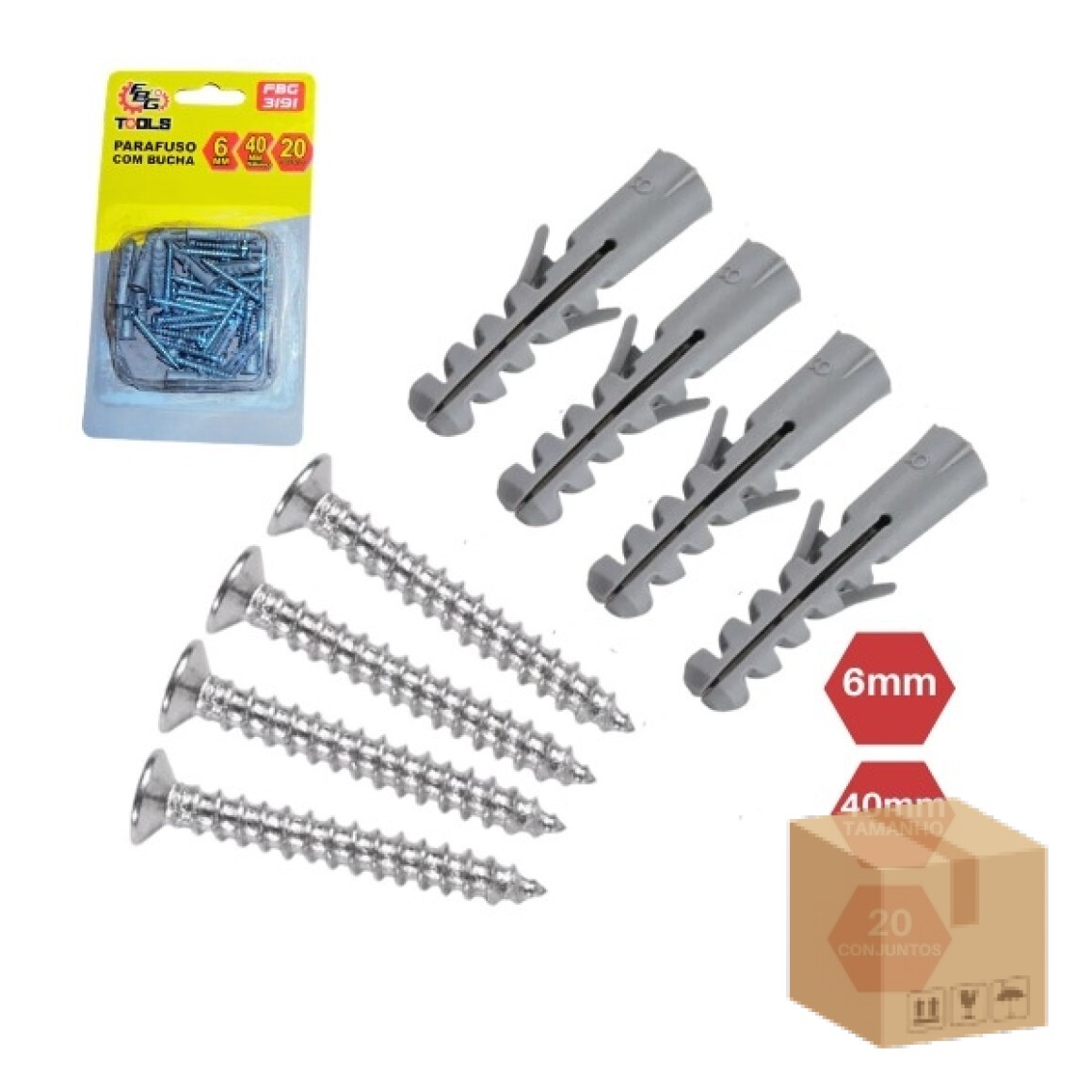 JOGO DE PARAFUSO COM BUCHA 6MM - MODELO FBG 3191